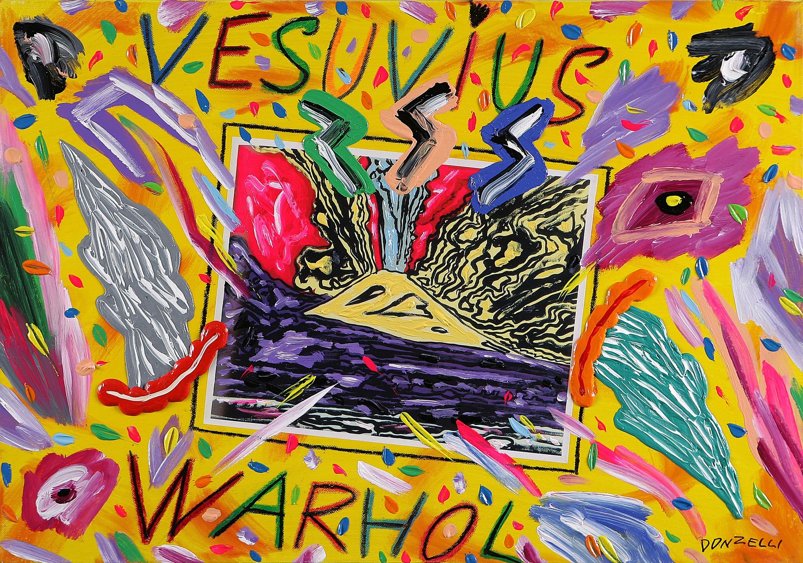DONZELLI BRUNO (n. 1941) Vesuvius Warhol. Tecnica mista su tela. Cm 50x70. Autentica dell'artista su fotografia. Firma in basso a destra. Al retro firma e titolo.