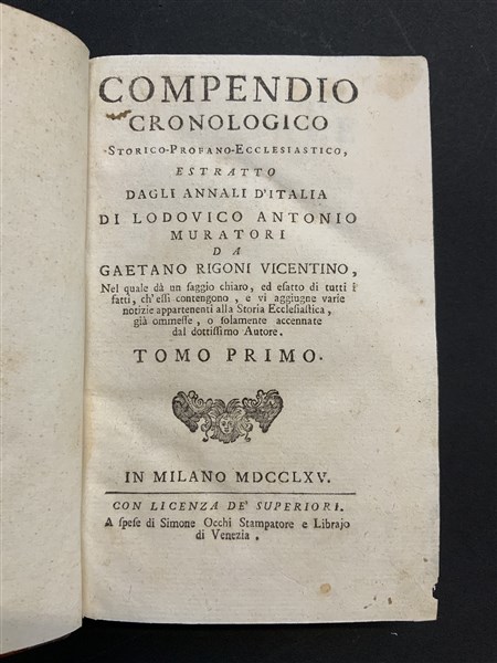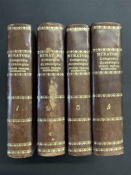 RIGONI Gaetano. Compendio cronologico storico-progano-ecclesiastico estratto dagli Annali d'Italia di Lodovico Antonio Muratori. 4 volumi in 8vo. Non collazionato e difetti da esaminare.