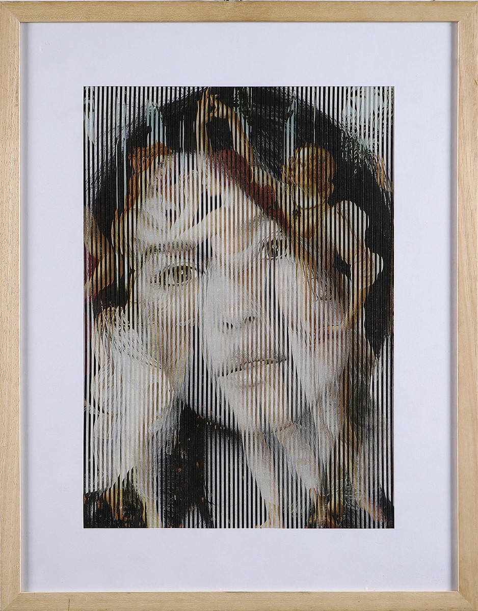 MALPIERO (n. 1934) Parabola - le tre Grazie, Monica Bellucci, 2006. Collage. Cm 42x30. Al retro cartiglio descrittivo dell'opera.