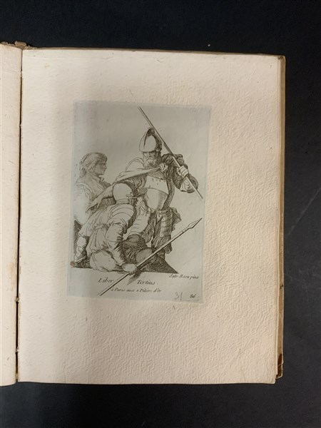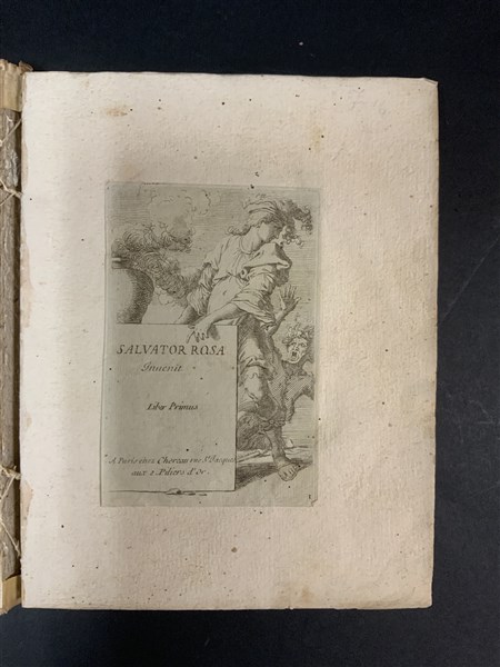SALVATOR ROSA. Liber primus... quartus. Parigi, chez Chereau, s.d. 1675 ca.]. 60 tavole incise in rame e numerate inclusi i frontespizi delle varie parti (la tavola 31 numerata come 86, le tavole montante nel libro). Cartone leggermente posteriore (alcuni difetti)