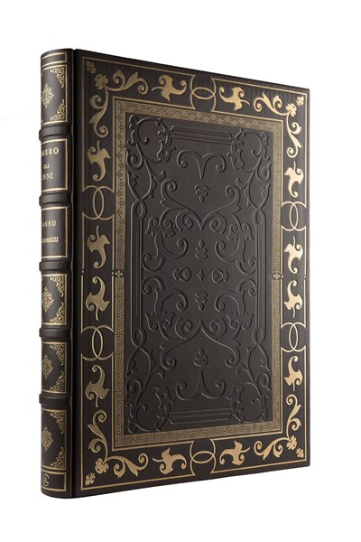 Folio (503 x 350mm). 5 litografie originali stampate a colori in torchio e firmate a matita da Sassu. Legatura editoriale in carta marmorizzata, entro contenitore alla francese in piena pelle naturale con fregi in oro al dorso e in oro e a secco ai piatti, il tutto a cura di Ennio Torri; entro cartone originale realizzato per la spedizione. Con certificato di autenticità inserito
