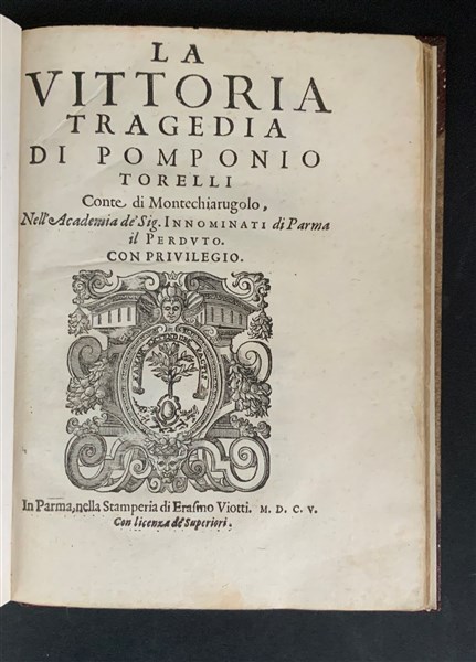 TORELLI, Pomponio. La Vittoria, tragedia. Parma: Erasmo Viotti, 1605. 4to, gran