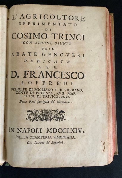TRINCI, Cosimo. L'agricoltore sperimentato. Napoli: Stamperia Simoniana, 1764.