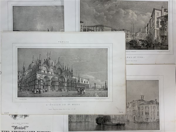 [VENEZIA] WYLD William (1806-1886), LESSORE Emile (1805-1876) - Album vénitien composé de douze vues]. Venezia : Joseph Kier, 1837. Seconda edizione di questa non comune raccolta di litografie veneziane composte dal frontespizio, indice delle tavole e 12 litografie