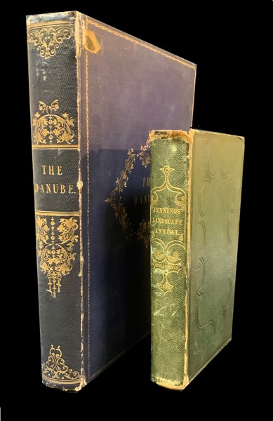 [VIAGGI] ROSCOE Thomas. The Tourist in Spain and Morocco. Illustrated from drawings by David Roberts. Londra: Jennings, 1838. 8vo, antiporta e frontespizio inciso, numeroste tavole incise fuori testo protette da velina. Legatura editoriale in percallina con titolo in oro al dorso. SI AGGIUNGE] BEATTIE William The Danube. Londra: Virtue and co. 1844] 4to, ritratto dell'autore in antiporta, frontespizio inciso, numerose tavole incise fuori testo e illustrazioni nel testo. Legatura editoriale in percallina con titolo in oro al dorso e al piatto. Non collazionato e difetti da esaminare.