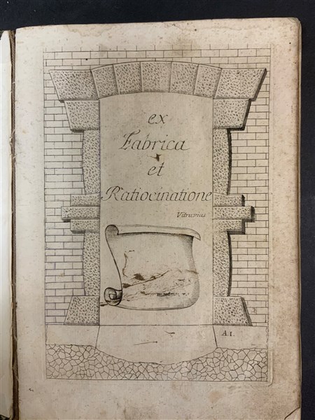 VIGNOLA, Barozzi da. L'architettura ridotta a facile metodo per mezzo di osservazioni a profitto de' studenti. Venezia: Remondini, 1787]. Manca il frontespizio generale all'opera. Collazione A1-A10, B1-E8, F1-F14 con frontespizio e 55 tavole incise in rame (macchie di umidità). Cartone coevo. L'opera si divide nel seguente modo: una prima sequenza con il frontespizio figurato "Ex Fabrica et Ratiocinatione (Vitruvius)" e nove tavole numerate; la seconda sequenza con frontespizio figurato "Callimacus ad hoc exemplar Columnas apud Corinthios fecit (Vitruvius)" e 31 tavole numerate; la terza con frontespizio figurato "Gravitas ponderis arte levis" e 13 tavole numerate.