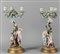 Coppia di candelabri a tre luci in porcellana policroma raffiguranti scene di genere Meissen sec.XIX