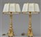 Coppia di lampade in metallo dorato basi con quattro putti che sorregge uno stelo in stile Luigi XVI
