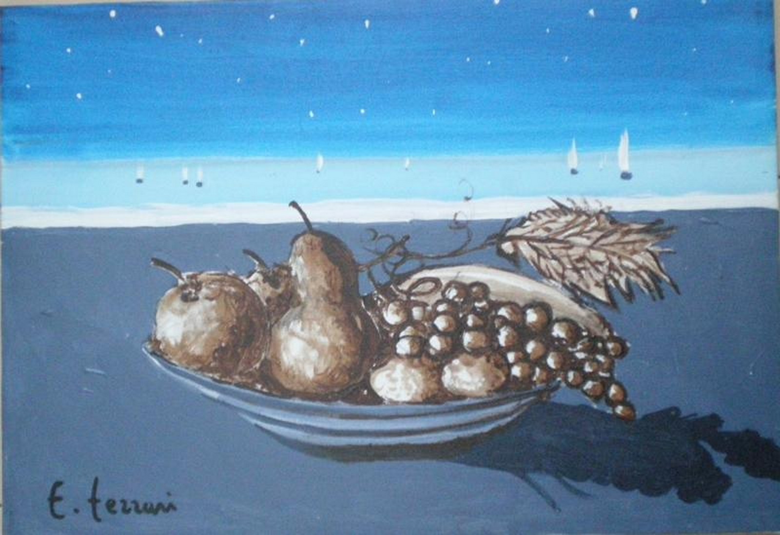 FERRARI E. Natura morta. Olio su tavola. Cm 35x50. Firma in basso a destra.