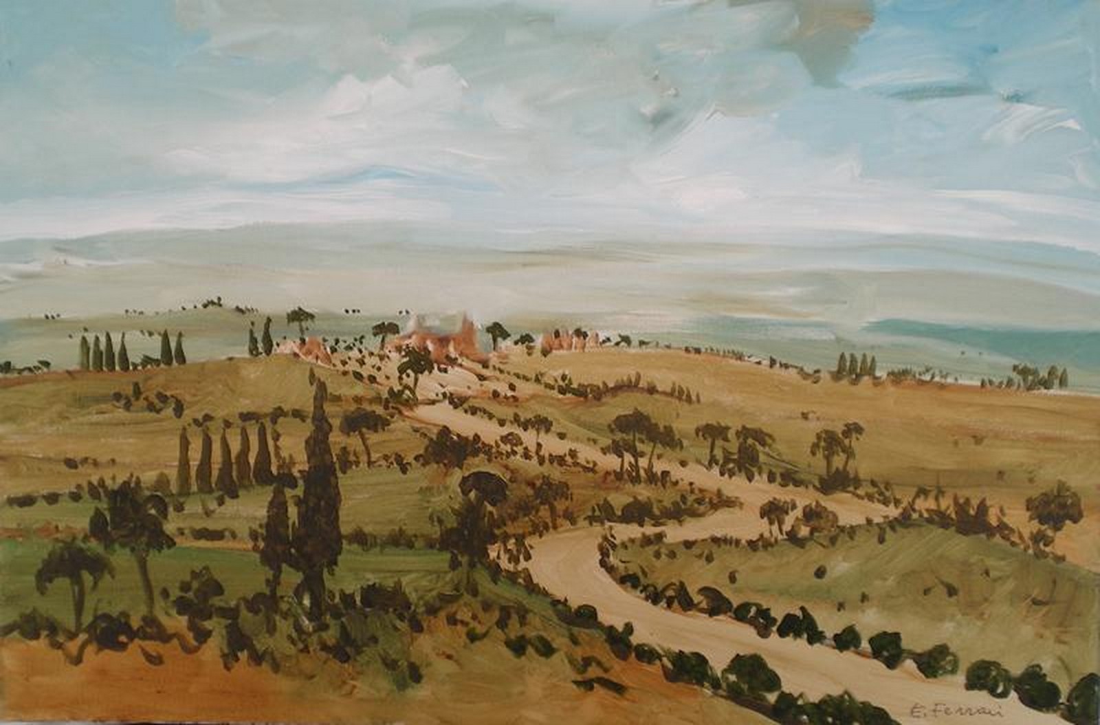 FERRARI E. Paesaggio. Olio su tela. Cm 40x60. Firma in basso a destra.