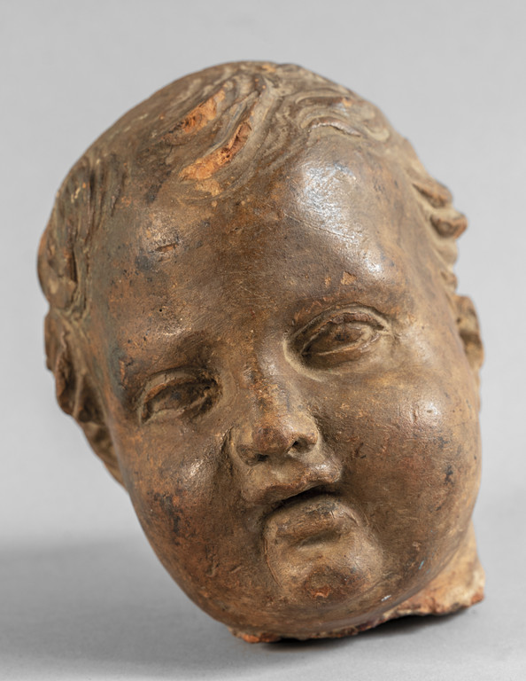 Testa di putto sorridente in terracotta Toscana sec.XVI