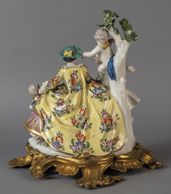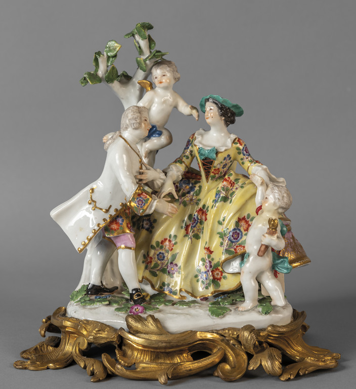 Scena galante gruppo in porcellana policroma modellata da G.G.Candler (Meissen 1747-1755) base in bronzo dorato