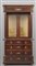 Curioso mobile a doppiocorpo in mogano con ricca decorazione in bronzo parte inferiore con quattro cassetti e mezze colonne sui montanti parte superiore a vetrina rientrante con due colonne sul fronte Francia sec.XIX