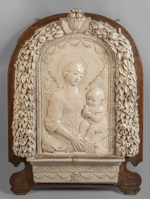 Madonna con Bambino placca robbiana in ceramica bianca sec. XVII