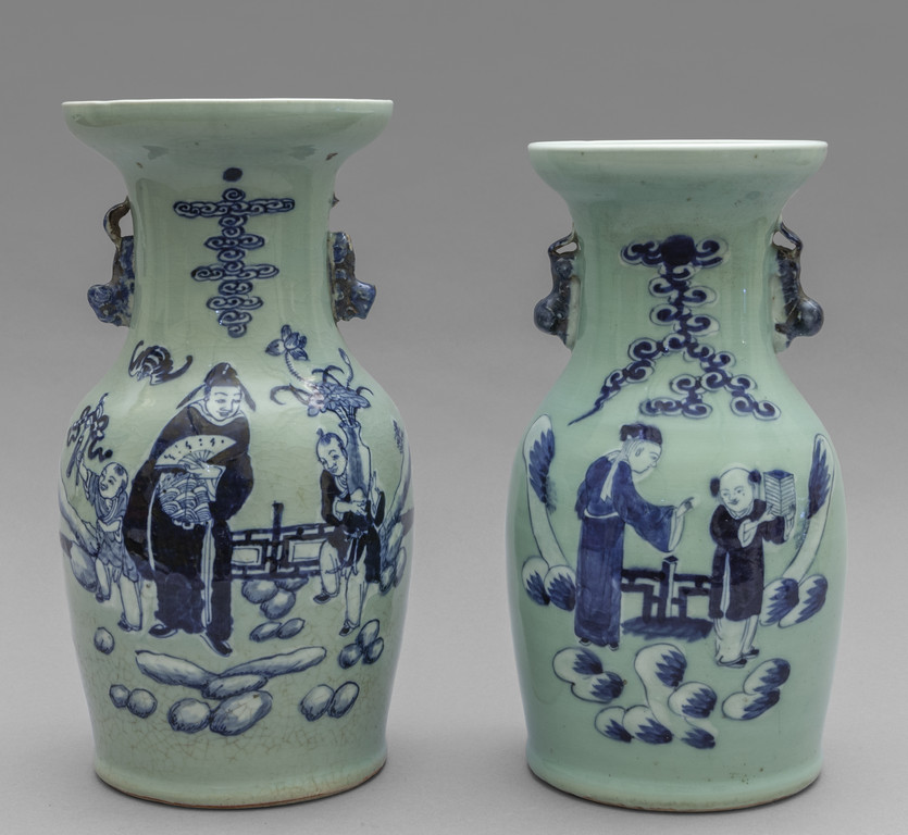 Due vasi in porcellana raffiguranti scene di vita orientale Cina sec.XIX
