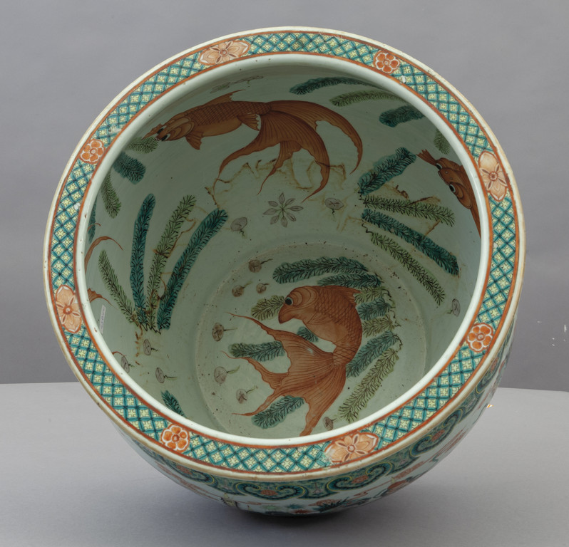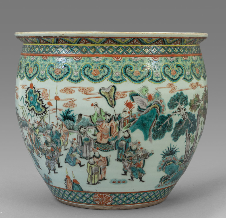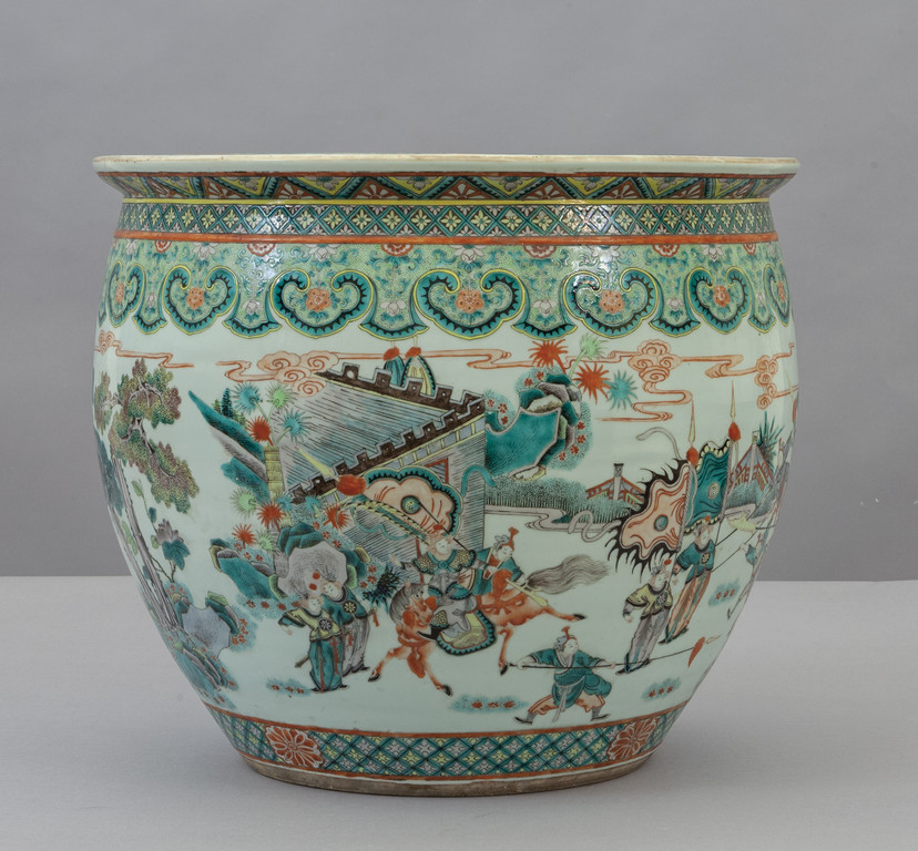 Grande cachepot in porcellana policroma famiglia verde Cina sec.XIX