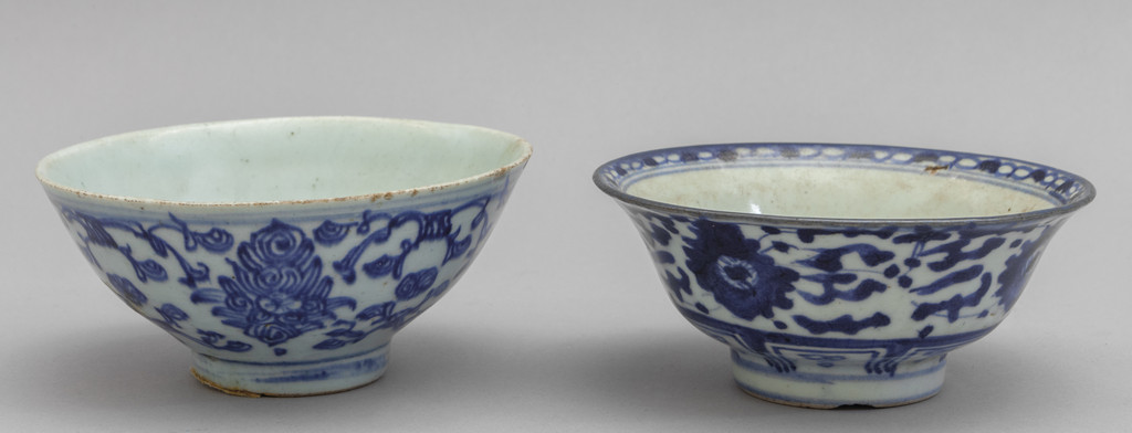 Due tazze in porcellana bianca e blu Cina sec.XVIII