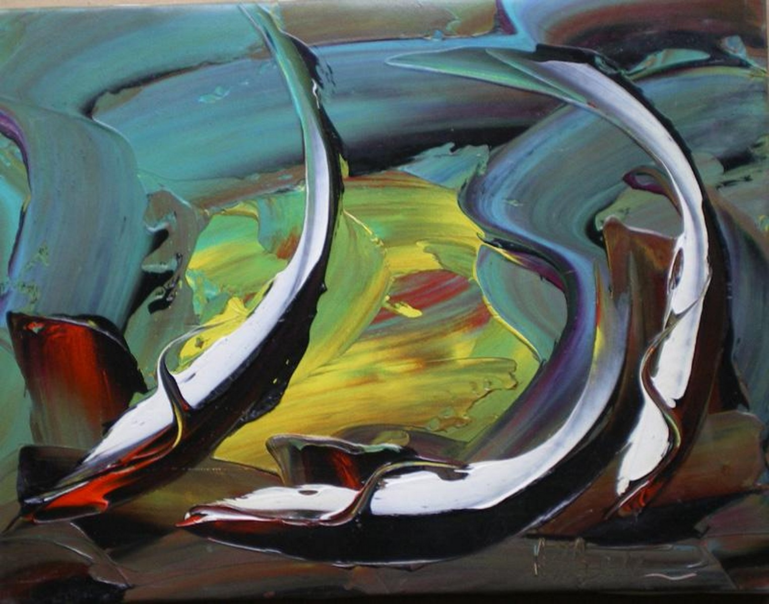 BELLINI ATTILIO ATTBELL (n. 1939) Fondo marino. Olio su tela. Cm 30x38,5. Firma in basso a destra.