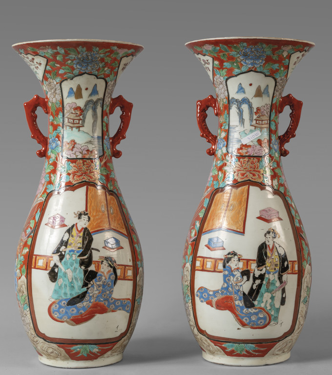 Coppia di vasi in porcellana decorata a personaggi in policromia Giappone sec.XIX