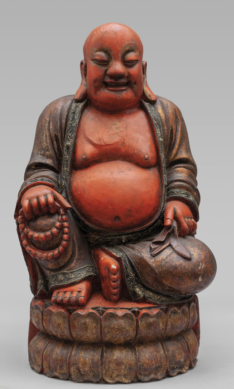 Budda antica scultura in legno dorato e policromato Cina sec.XIX