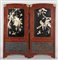 Paravento a due ante in legno laccato nero e rosso con al centro pannelli con raffigurazioni di uccelli fiori e alberi in avorio e madreperla Giappone fine sec.XIX