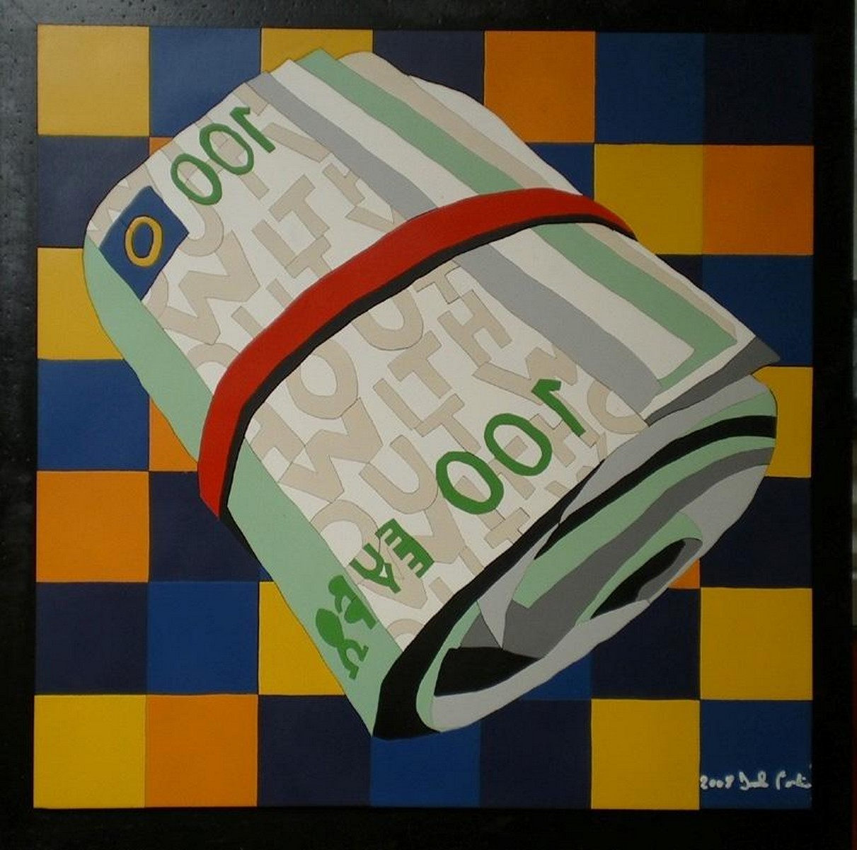 FORTUNA DANIEL (n. 1981) No Money, 2008. Intarsio su legno. Cm 75x75. Firma e...