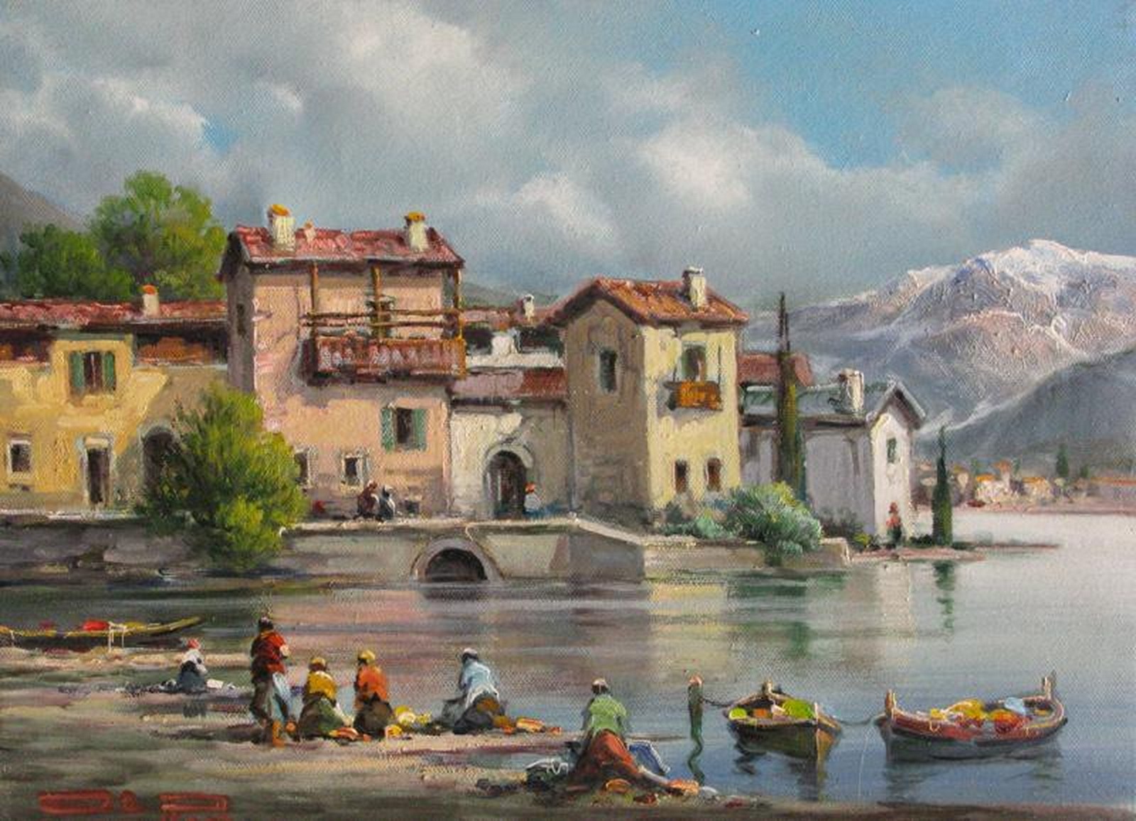 DE ROSA Lago di Como. Olio su tela. Cm 30x40. Firma in basso a sinistra.