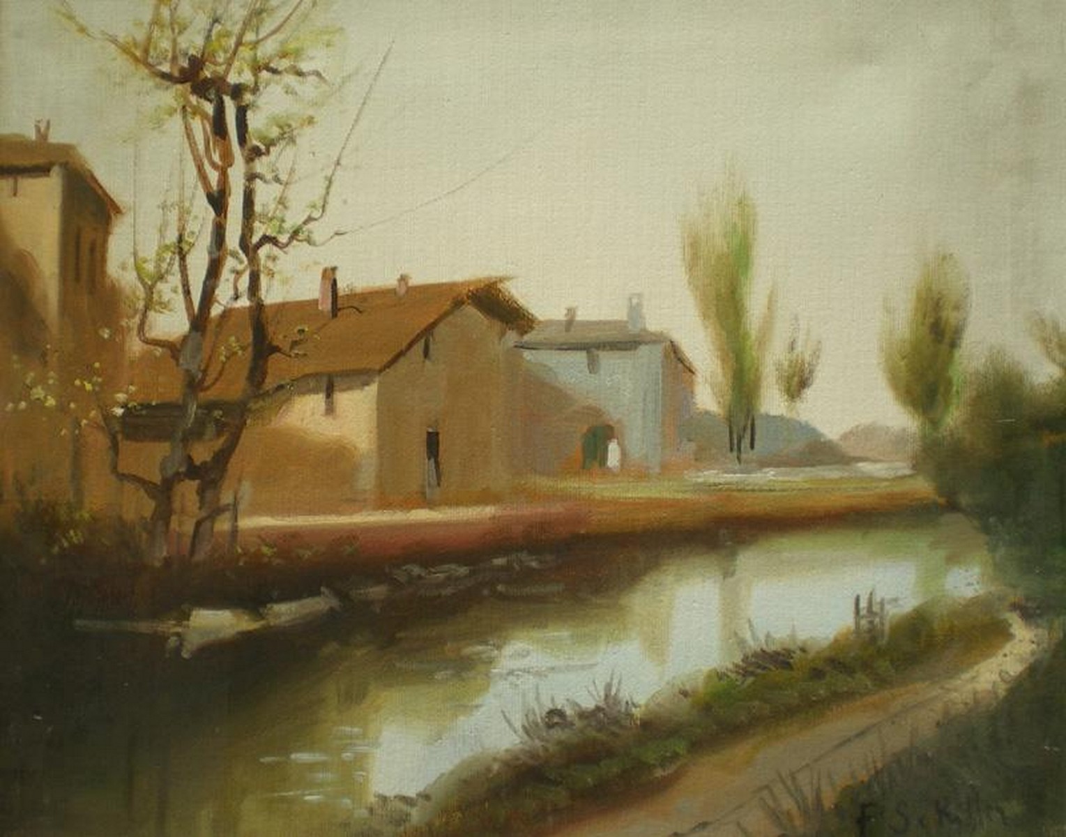SCHILLER F. Paesaggio. Olio su tela. Cm 40x50. Firma in basso a destra.
