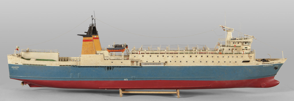 'Argentea' modello di nave portamacchine in legno sec.XX