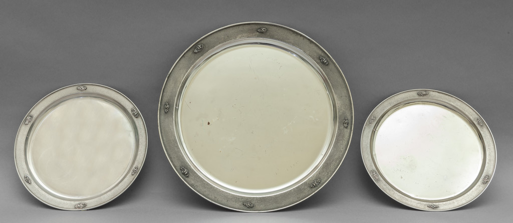 Tre piatti (due più uno) da portata in argento bordo sbalzato con fiorellini