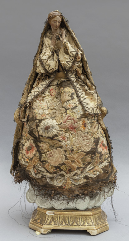 Madonna scultura in legno policromo con vestiti ricamati Napoli sec.XVIII