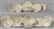 Servizio di piatti Richard Ginori in porcellana decorato a fiorellini su fondo crema composto da 35 piatti piani 11 fondi 12 frutta 1 zuppiera 1 coppa di alzate 1 insalatiera 2 raviere 3 piatti da portata ovali e 1 rotondo