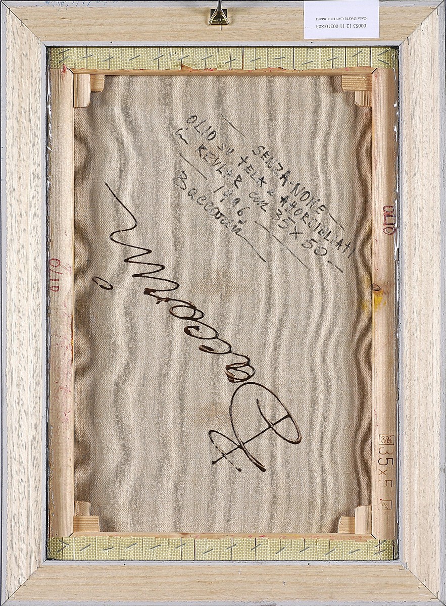 BACCARIN ANTONIO (n. 1954) Senza titolo, 1996. Tecnica mista su tela. Cm 35x50. Al retro firma, tecnica, misure, data.