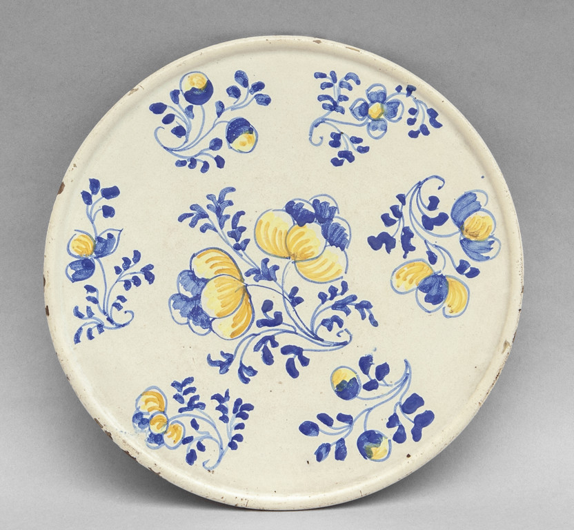 Alzata in ceramica di Savona decorazione policroma su fondo bianco sec.XVIII