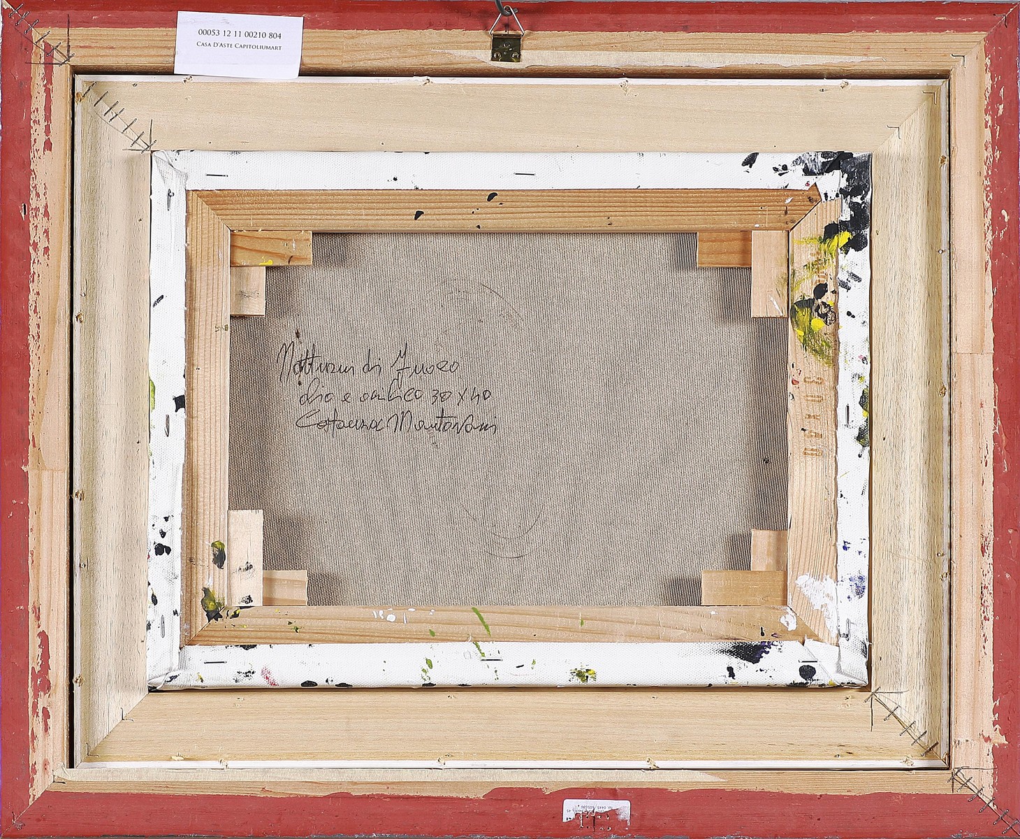 MANTOVANI COSTANZA Notturno di fuoco. Olio e acrilico su tela. Cm 30x40. Autentica dell'artista su fotografia. Firma in alto a destra. Al retro firma, titolo, tecnica, misure.