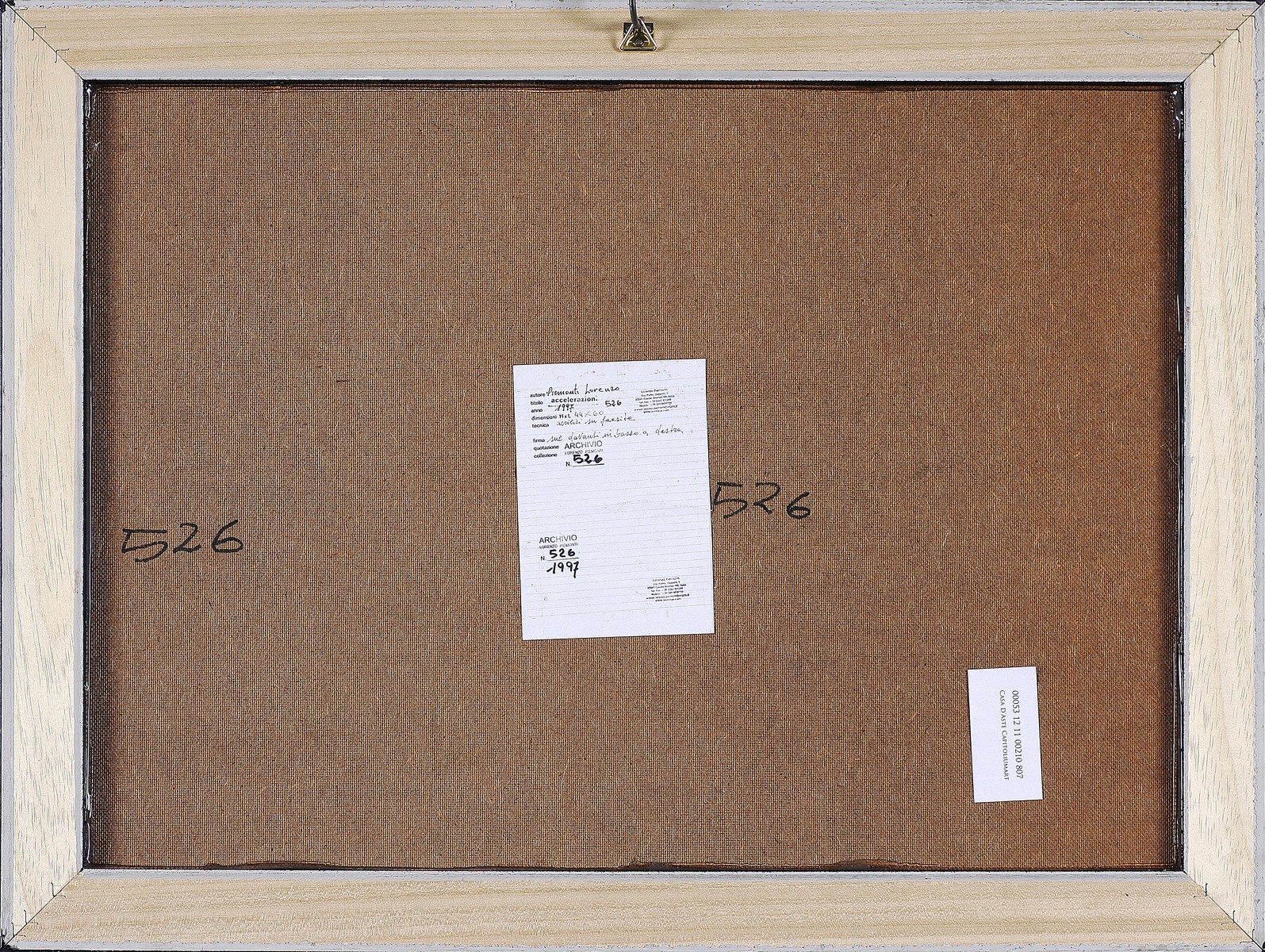 PIEMONTI LORENZO (n. 1935) Accelerazioni, 1997. acrilico su faesite. Cm 44x60. Al retro cartiglio descrittivo dell'Archivio Lorenzo Piemonti.Firma e data in basso a destra. Autentica dell'artista su fotografia.