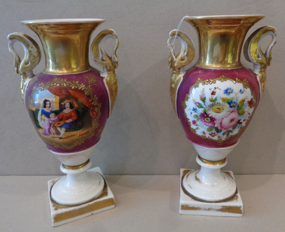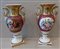 Coppia di vasi Impero in porcellana decorati in policromia ed oro con scene galanti Francia sec. XIX