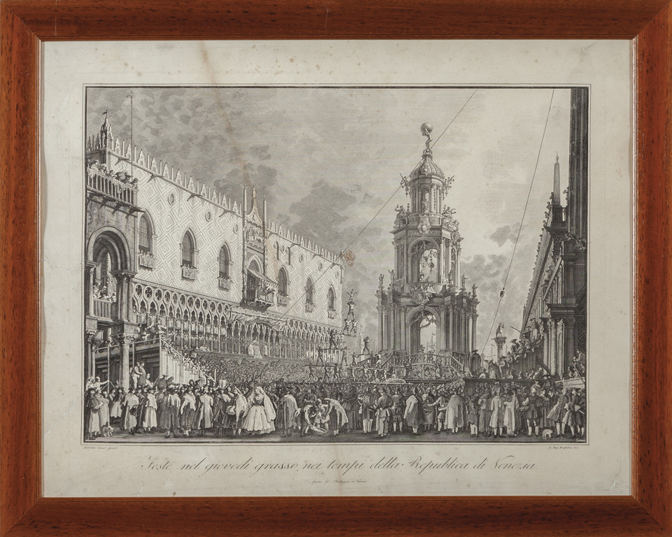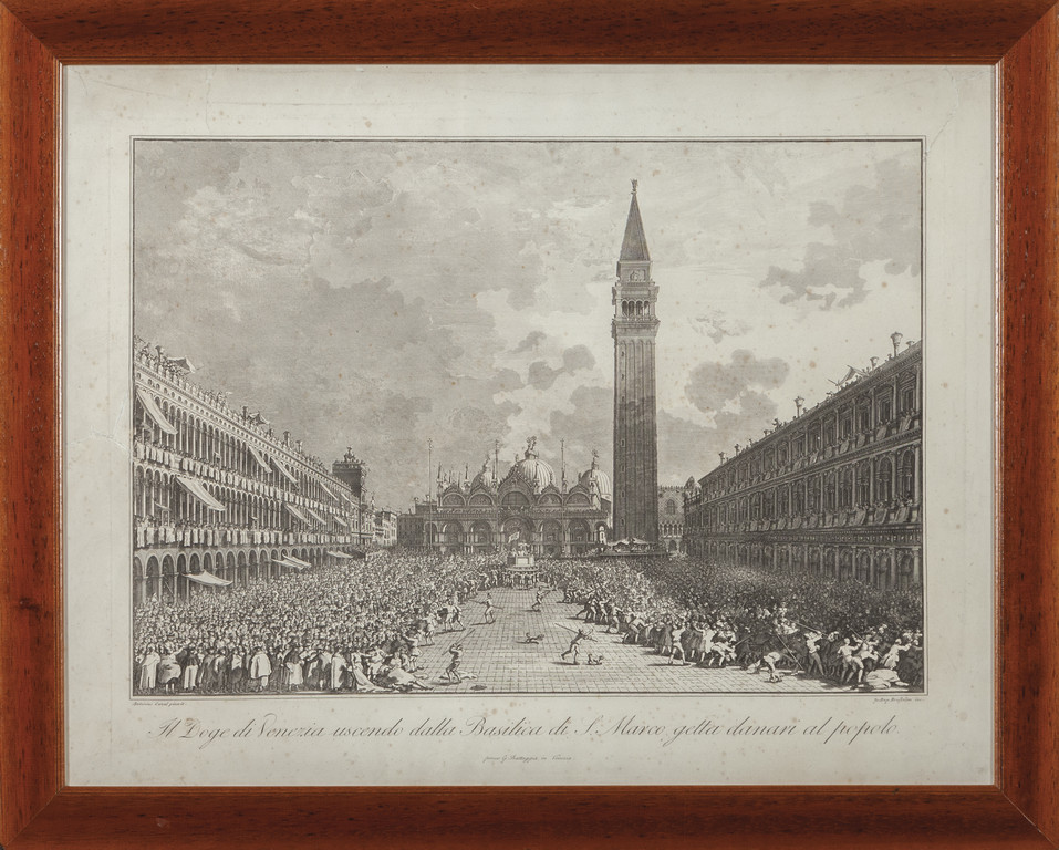 'La festa del giovedì grasso' e 'Il doge uscente dalla Basilica getta denari al popolo' coppia di stampe da Canaletto