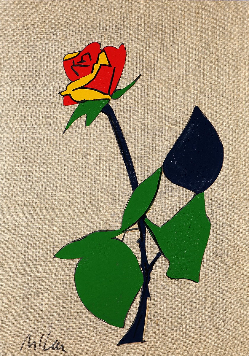 LODOLA MARCO (n. 1955) Rosa. Tecnica mista su tela grezza. Cm 100x70. Collage...