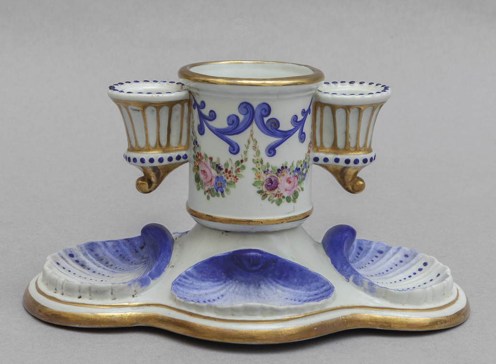 Calamaio in porcellana bianca blu ed oro sec.XIX