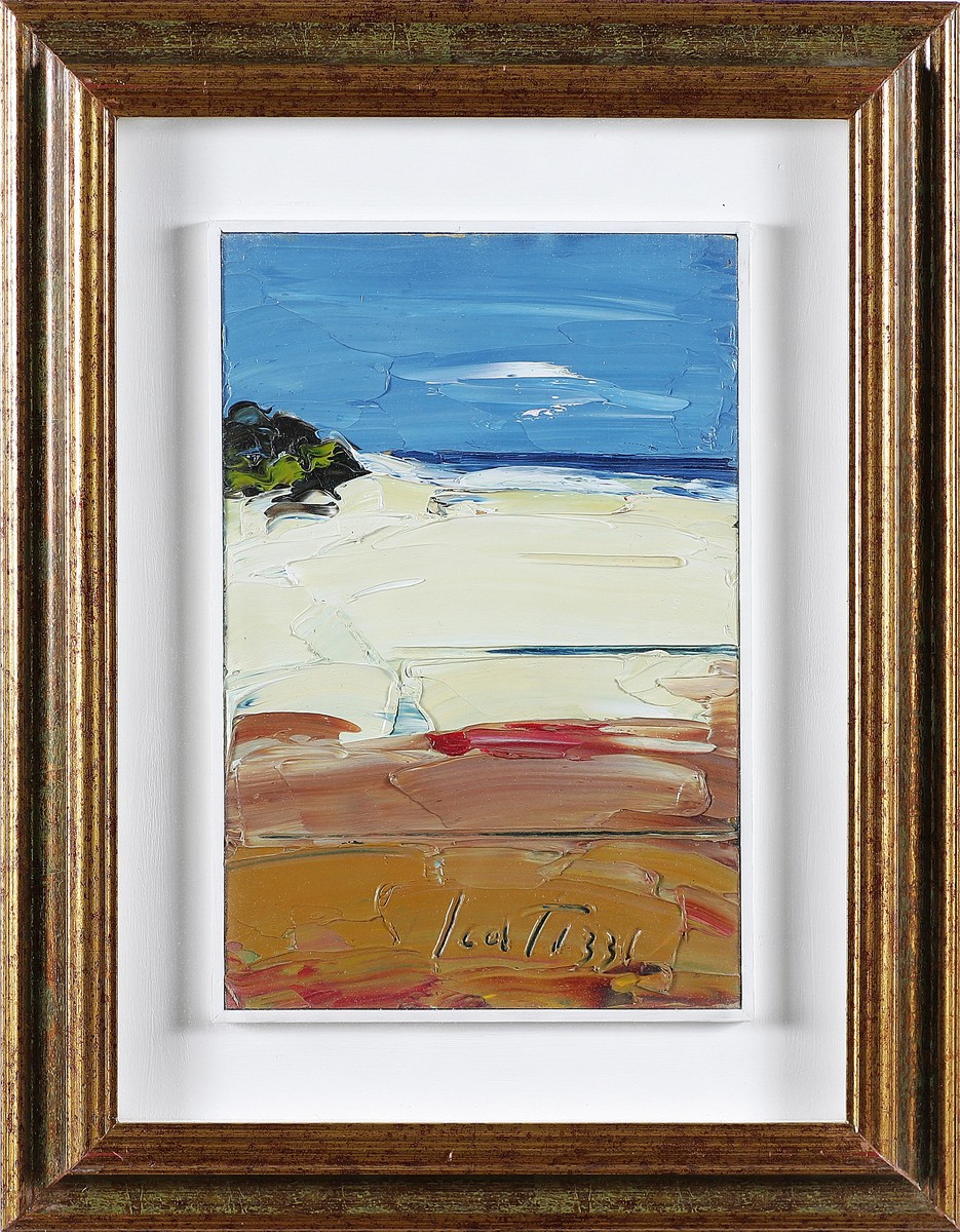 SCATIZZI SERGIO (1918 - 2009) Spiaggia. Olio su tavola. Cm 30x20. Autentica del'artista su fotografia. Firma in basso a destra. Al retro firma.