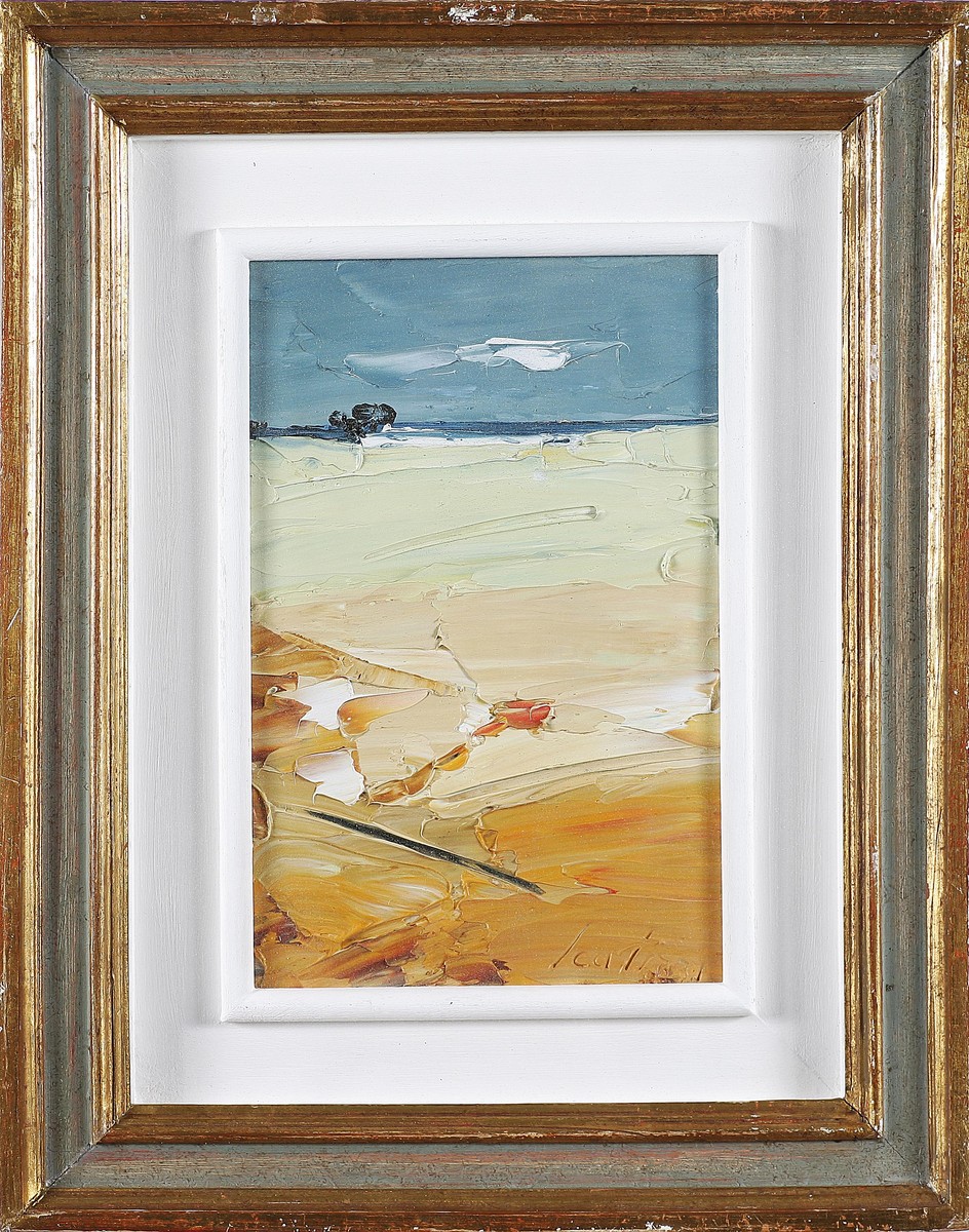 SCATIZZI SERGIO (1918 - 2009) Spiaggia. Olio su tavola. Cm 30x20. Autentica dell'artista su fotografia. Firma in basso a destra. Al retro firma.