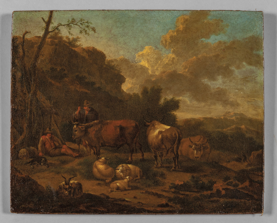 Scuola italiana sec.XVIII 'Paesaggio con armenti e pastori' olio