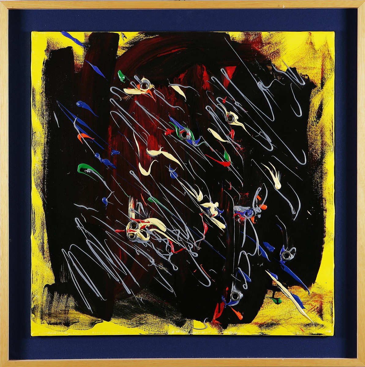 STARO GIUSEPPE (n. 1961) Senza titolo. Acrilico e collage su tela. Cm 90x90. Acrilico e bulloni su tela. Firma al retro. Autentica dell'artista su fotografia.