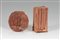 SPAGNULO GIUSEPPE Coppia di sculture. Gres. Coppia di sculture di cui quella rotonda è danneggiata in basso a destra. Dimensioni: cm 22x11x10,5; cm 18x18x7,5. Provenienza Fontana Arte, Corsico Milano. Autentica su fotografia ad opera della Galleria dell'Agrifoglio.