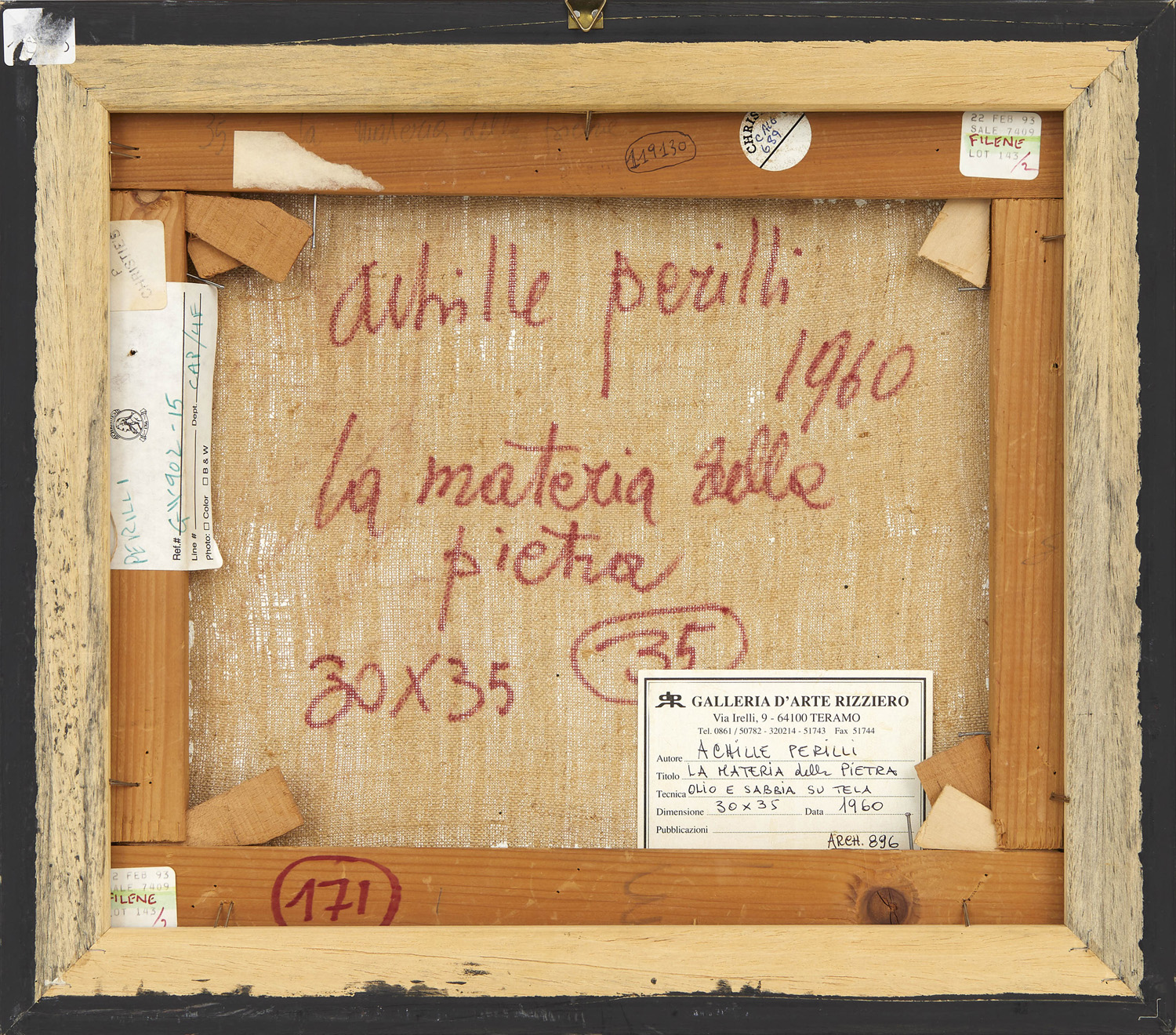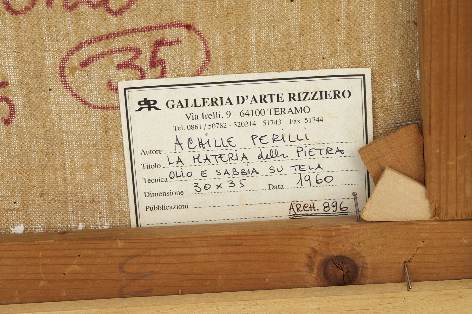 Etichetta della Galleria d'Arte Rizziero, Teramo sul retro