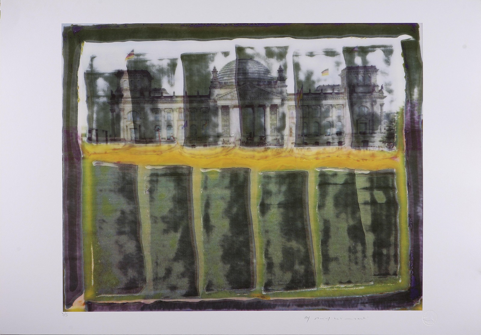 GALIMBERTI MAURIZIO (n. 1956) Reichstag 6. Pigmenti su cartoncino. Cm 60x75. Autentica dell'Archivio Nordest, Seregno (MI).. Misure di tutto il foglio: 70x100cm. Tir. 3/5 in basso a sinistra. Tiratura e firma in basso a matita. Al retro timbro dell'Archivio Nordest con relativo numero di catalogazione.