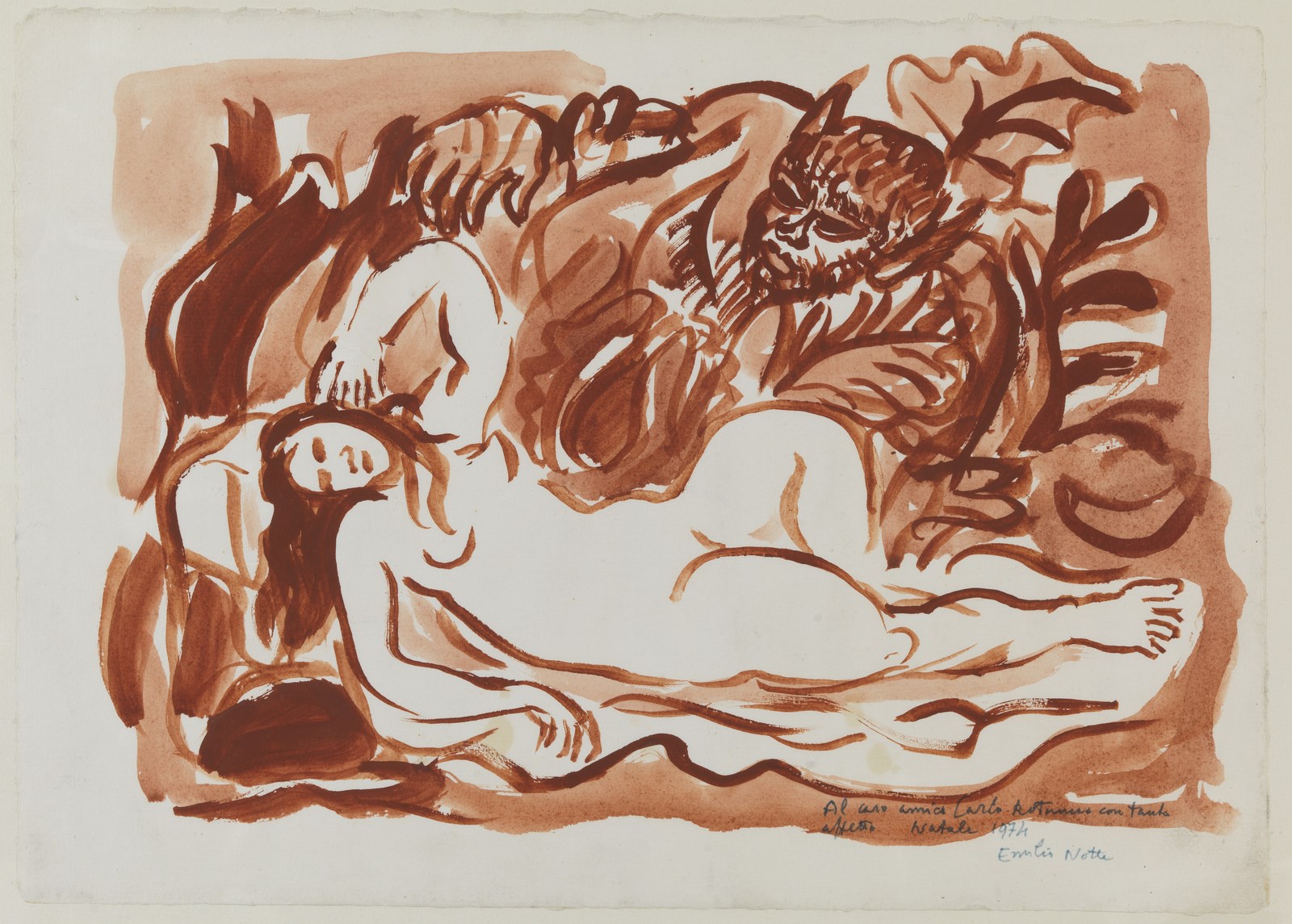 NOTTE EMILIO (1891 - 1982). Senza titolo.. Firma e dedica in basso a destra.. Cm 43,00 x 31,00.