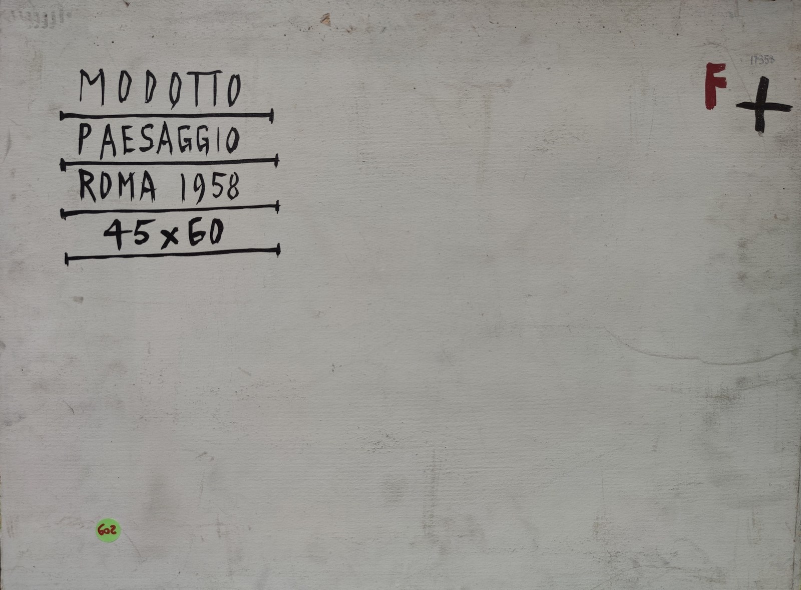 MODOTTO ANGILOTTO ERMAGORA (1900 - 1968). Paesaggio. Roma 1958. Firma in basso a destra. Cm 60,00 x 45,00. 1958