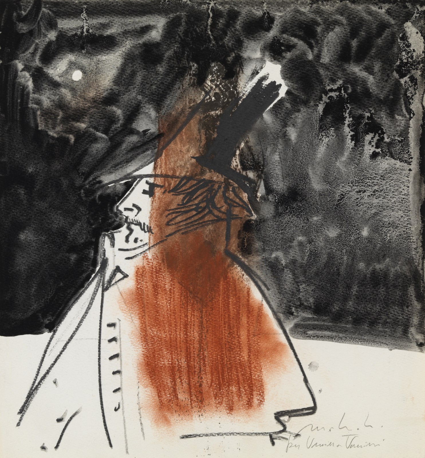 MATTIOLI CARLO (1911 - 1994). Per Vanina Vanini.. Firma e titolo in basso a destra. Pubblicazione: Mattioli a cura di Stefano Crispi, Galleria Marini Edizioni, Milano, 4Ottobre 2018- 10 Gennaio 2019, tav.8 (dimensioni errate).. Cm 26,00 x 27,50. 1970